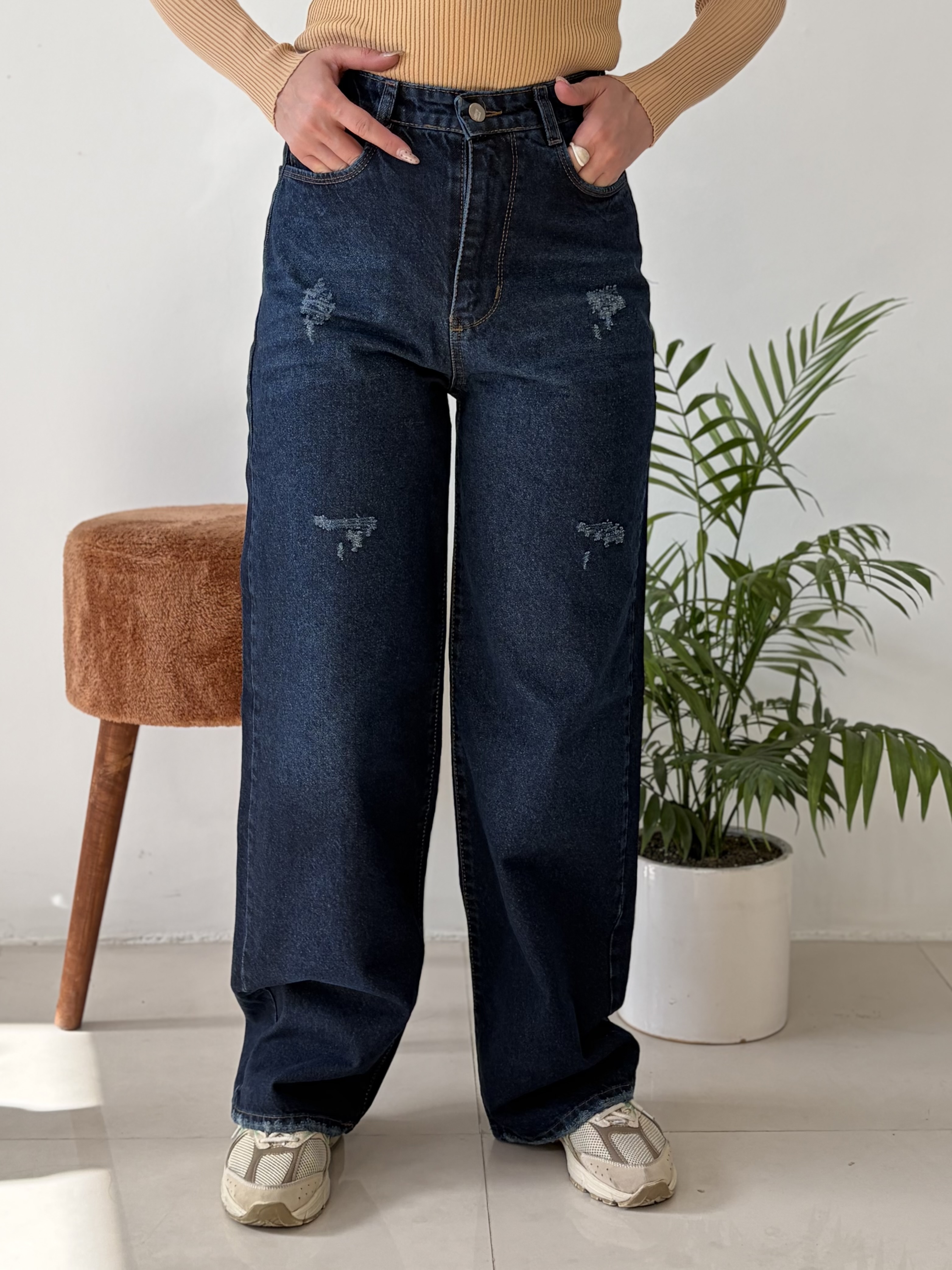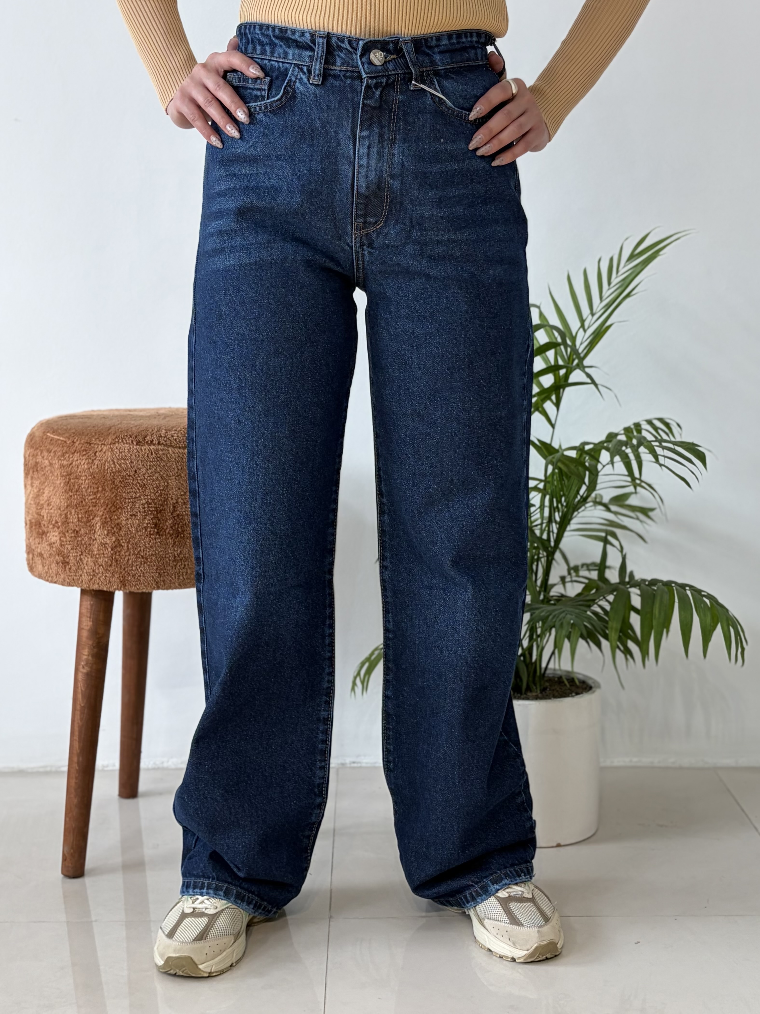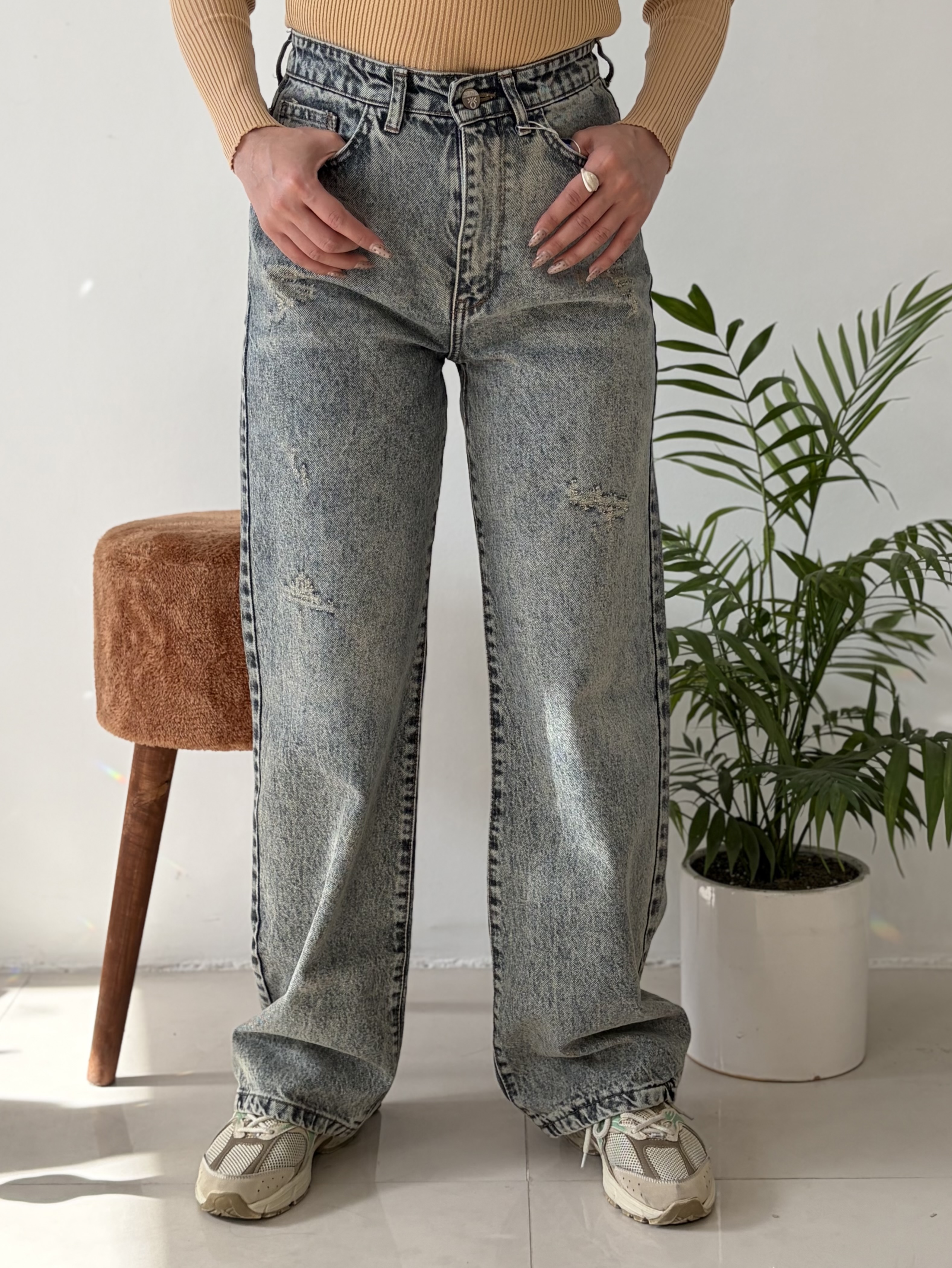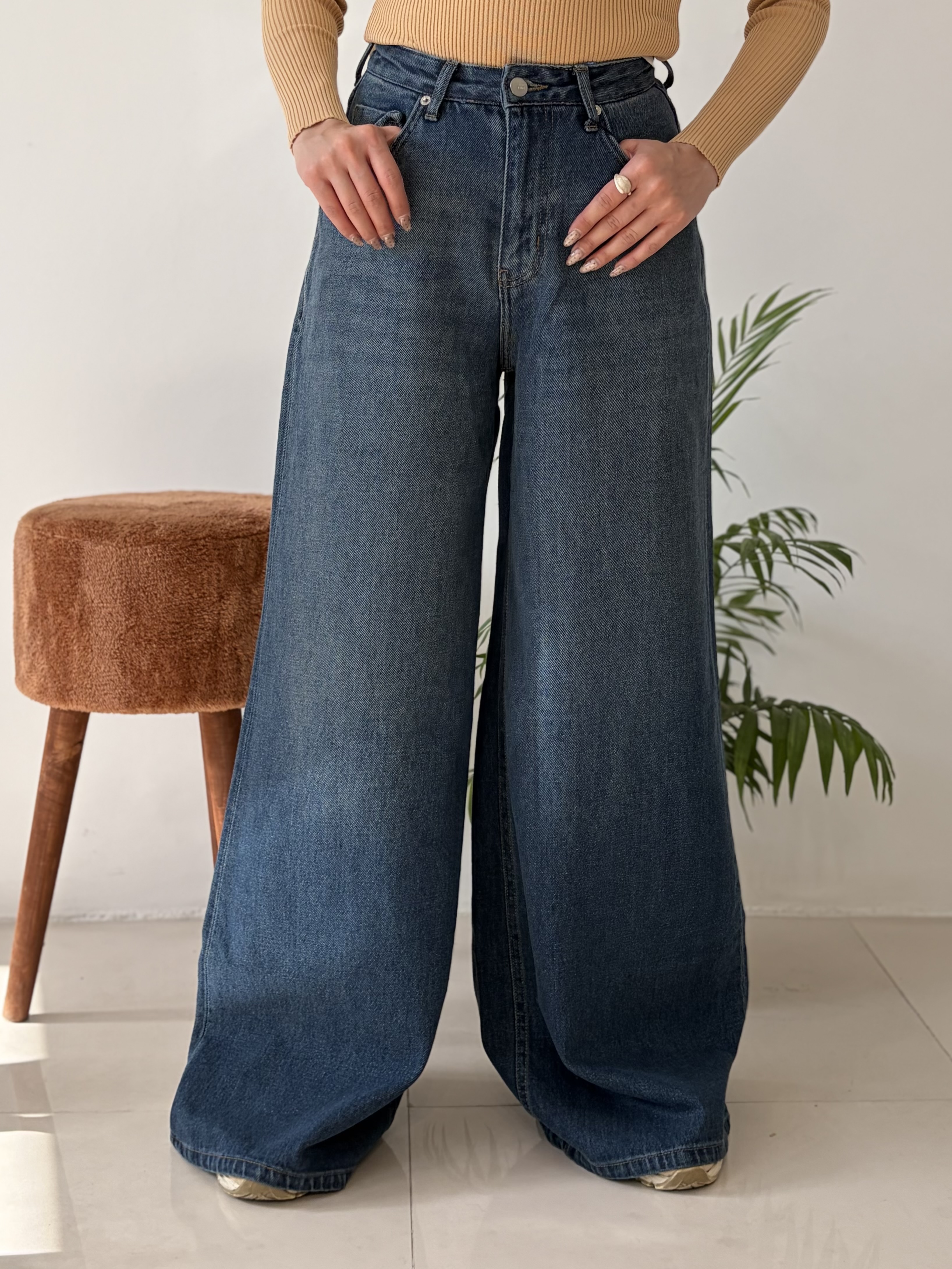 شلوار جین رویال مدل سوپر لانگ واید – رنگ آبی وسط برفکی