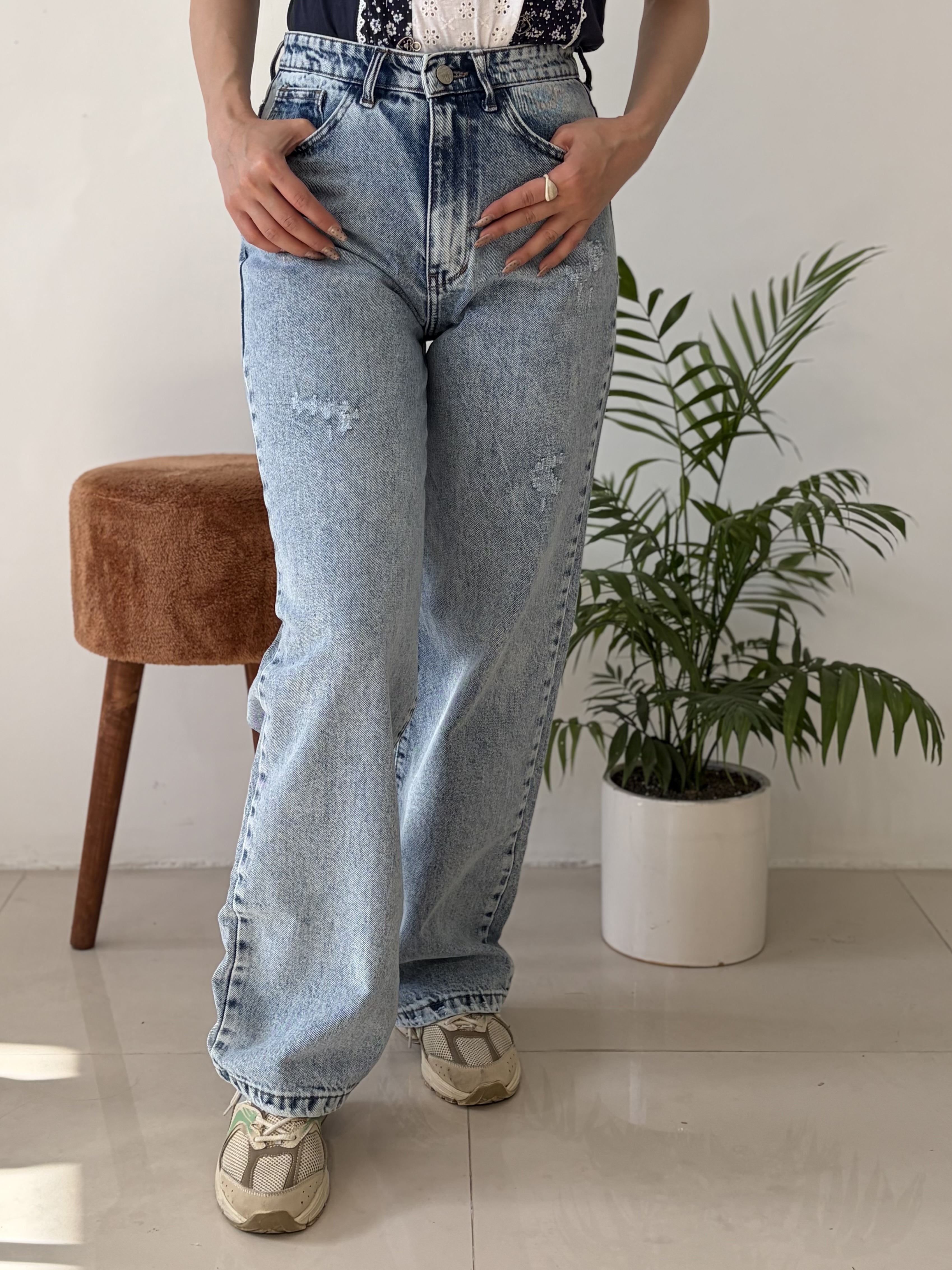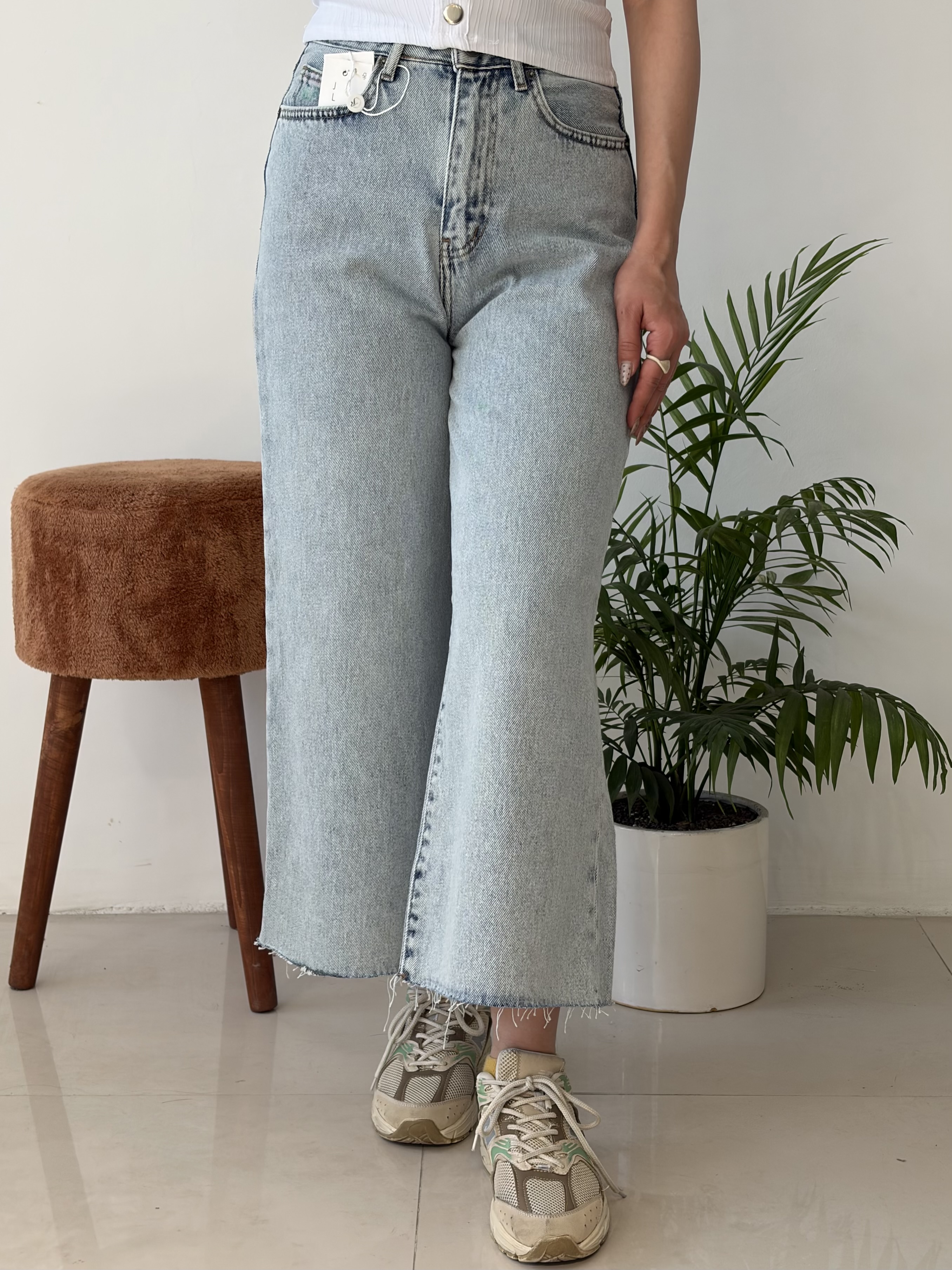 شلوار جین رویال مدل لانگ واید لگ کراپ – رنگ آبی یخی